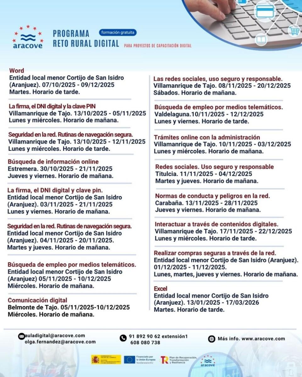 Programa Reto Rural Digital, impulsado por ARACOVE, pone a tu alcance cursos gratuitos que también incluyen formación en trámites online, uso de la firma digital y navegación segura en internet ¡Una formación práctica y gratuita para hacer tu vida más sencilla!