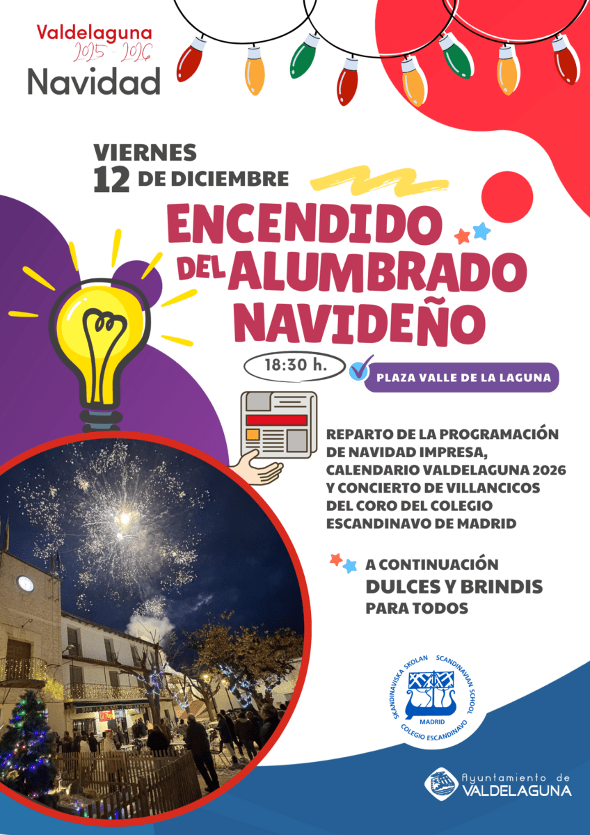 El Ayuntamiento de Valdelaguna invita a todos los vecinos y familias al acto oficial de encendido del alumbrado navideño, que tendrá lugar el: