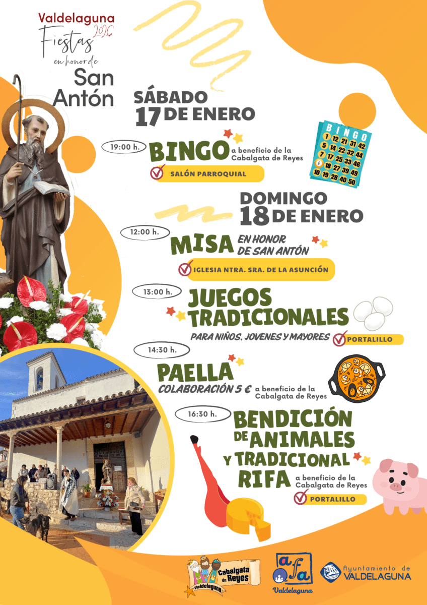Valdelaguna celebrará los próximos sábado 17 y domingo 18 de enero las tradicionales Fiestas en honor a San Antón, con un completo programa de actividades para todos los públicos.